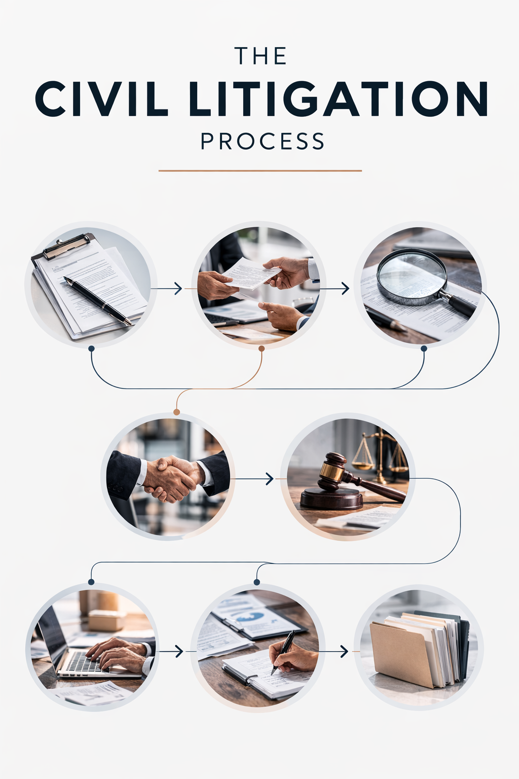 Most civil lawsuits follow a structured path. Although every case is different, the civil litigation process often moves through these core stages.